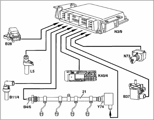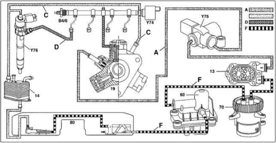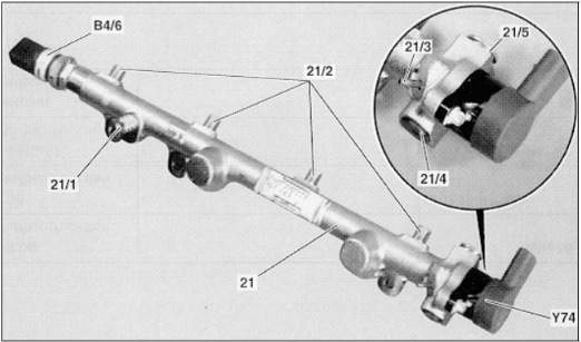 B4/6-spiediena devējs degvielas spiediena akumulatorā.