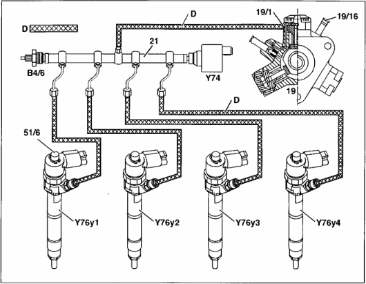 19/1-degvielas caurule no augstspiediena sūkņa uz spiediena akumulatoru.