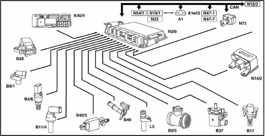 N73-EZS vadības bloks, starta signāla vads, klemme 50.