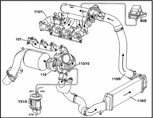 C-izplūdes gāzes uz turbīnu.