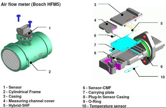Bosch HFM5 gaisa masas mērītājā pārbaudes metodika ir ļoti vienkārša - pie ieslēgtas aizdedzes un nestrādājoša