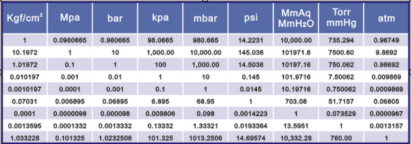 Spiediena mērvienību tabula (kalkulators)