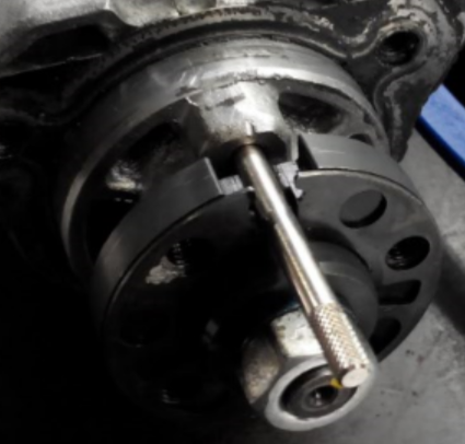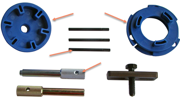 -kloķvārpstas devēja vietā ievietot kloķvārpstas fiksatoru (att.), nofiksēt.