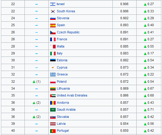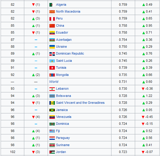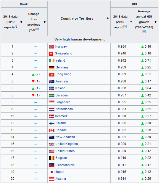 List of countries by Human Development Index Valstu saraksts pēc Tautas attīstības indeksa, ANO. 2019. ANO izstrādāts rādītājs - valstu saraksts pēc Tautas attīstības indeksa (TAI). motorram.com